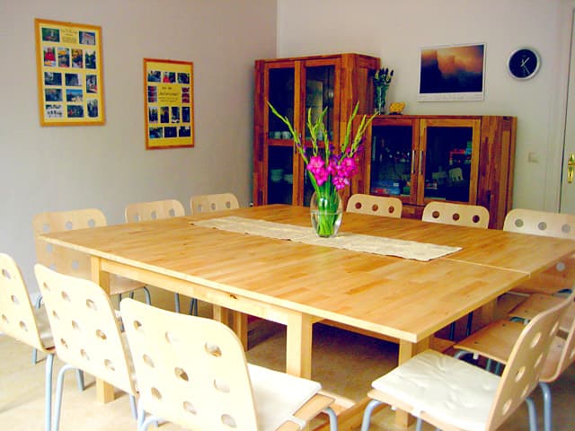 Es leben je 2-3 Personen in einer Wohnung im eigenen, selbst zu möblierenden Zimmer. In den Gemeinschaftsräumen können sich die Bewohner:innen mit Freund:innen, Angehörigen und Mitbewohner:innen treffen; dort findet auch ein Teil der regelmäßigen Gruppenaktivitäten statt. Der Garten im Hof wird von der TWG unter Anleitung gestaltet, gepflegt und für Gemüseanbau und gemeinsame Aktivitäten im Freien genutzt. Das Betreuungsbüro befindet sich ebenfalls in dem Wohnhaus.