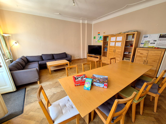 Der Standort Rathenaustraße 7 (10 Plätze)befindet sich im Bezirk Treptow-Köpenick, Ortsteil Oberschöneweide in 12459 Berlin und besteht aus fünf kleineren Wohneinheiten, die im 1., 2. und 3. Obergeschoß des Vorderhauses liegen. Die Kontakt- und Beratungsstelle ist fußläufig erreichbar. In der Nähe bietet die Wuhlheide die Möglichkeit erholsamer Spaziergänge. Dort nutzen wir auch die Sportangebote der Arena. Von der nahe gelegenen Straßenbahnhaltestelle sind schnell der S-Bahnhof Schöneweide und das Schöneweide-Center erreichbar sowie in die andere Richtung der S-Bahnhof Köpenick und das Forum Köpenick.